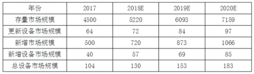 家具制造业中,2017年定制家具渗透率为30%,传统家具渗透率为70%;按板式家具制造企业100亿元产值对应采购约8亿板式家具机械估算;以定制家具30%年增速,传统成品家具以年均5%进行测算,预计2020年,板式家具市场规模将达到6800亿元,年复合增速达到14.3%。在更新需求和新增需求的驱动下,2017年板式家具设备市场规模约104亿元,2020年可达183亿元。