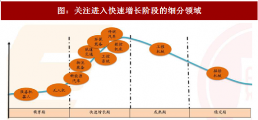 结合历史业绩和业务态势进行自下而上地验证(分析数据剔除以下三类企业:2016年净利润低于1000万;营收少于5000万;2015-2016年连年亏损的企业),根据2016年年报数据,工业自动化、传统汽车、新能源汽车增速较快,对应增速32.06%、28.90%和26.12%,均高于创业板2016年的同比增长24.45%。新能源汽车整体市场态势逐渐趋向健康化;工业自动化板块由于下游制造业(如3C自动化板块)降成本压力大,高性价比的国产品牌收到亲赖;而传统汽车2016年的快速增长具一定偶然性,不具太强可持续性。