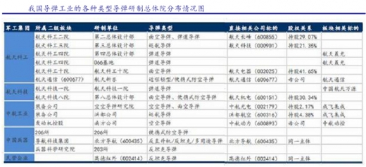 此外,其他类型的导弹领域,空空导弹的最大科研生产总体单位是中航工业的空空导弹研究院,已完成研制近距格斗、中距和远距拦截等霹雳系列空空导弹,为我国新型作战飞机提供导弹武器系统配套,最终客户是空军和海军航空兵部队。反坦克导弹方面,中国兵器的某所是我国最大的反坦克导弹研制总体单位,同一军工集团下属的上市公司北方导航以及民营上市公司高德红外也具有反坦克导弹总体研制资质。