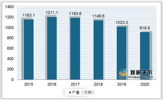 随着我国经济的飞速发展,使得居民生活条件有了很大的改观,除住房外,汽车成了重要的生活资料。但自2017年起中国轿车产量逐年下滑,2020年中国轿车产量为918.9万辆,同比下降10.2%。