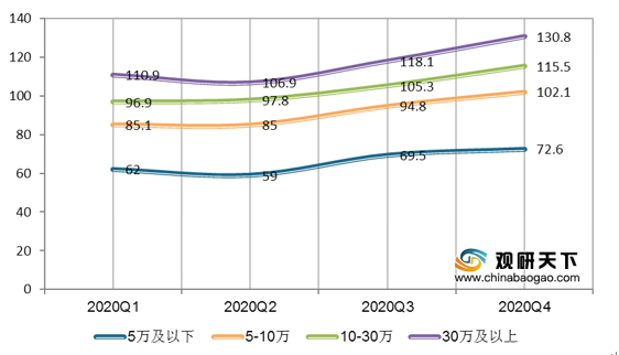 购买者的收入、消费水平以及购买数量决定了其议价能力。近年来,我国居民人均可支配收入及消费支出逐渐增长,2020年我国人均可支配收入达32189元,消费支出达21210元。此外,从2020年我国家庭收入结构来看,年收入 10-30万家庭的收入水平也开始正向增长,年收入30万及以上家庭的收入水平持续增加。随着消费者收入层次提高,其对轿车的需求也随之提升,而可供消费选择的品牌越来越多,因此,客户在相当程度上对轿车的议价能力越来越强。