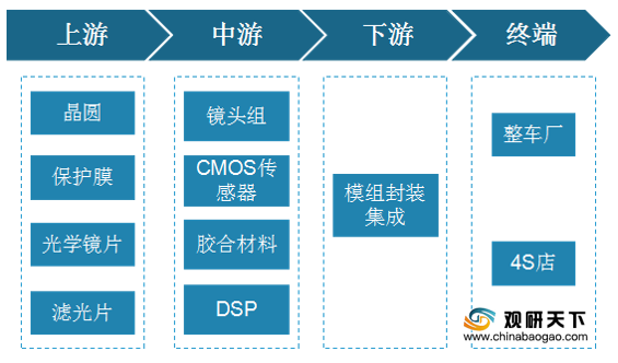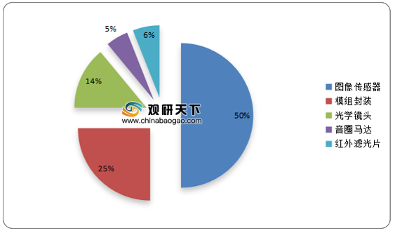 在成本构成中,图像传感器是车载摄像头的核心技术,成本占比最高,达到50%左右;其次是模组封装,成本占比为25%;然后是光学镜头,占比为14%。
