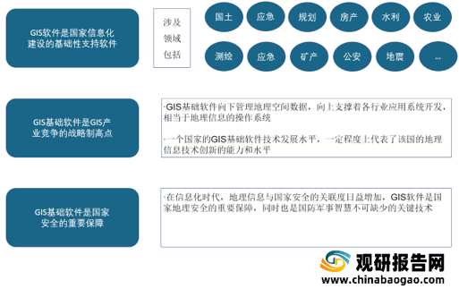 以实景三维中国为代表的地理信息是支撑新时期数字中国建设的基础性、关键性数据资源。GIS基础软件向下管理地理空间数据,向上支撑着各行业应用系统开发,相当于地理信息的操作系统。并且,在信息化时代,地理信息与国家安全的关联度日益增加,GIS软件是国家地理安全的重要保障,同时也是国防军事智慧不可缺少的关键技术。