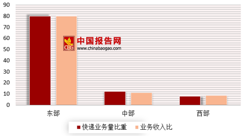 分地区来看,1-11月东、中、西部地区快递业务量比重分别为79.9%、12.2%和7.9%,业务收入比重分别为80%、11.2%和8.8%。