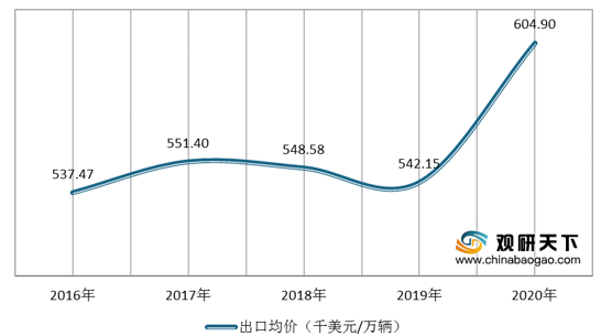 从出口均价来看,2020年,我国自行车出口均价为6029.7千美元/万辆,较上年增长62.75千美元/万辆。