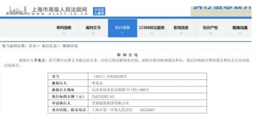 近日,上海市高级人民法院网发布消息显示,美锦能源集团有限公司(下称“美锦集团”)因李兆会拒不履行法律文书确定的义务,申请了相应措施,目前,法院已经限制李兆会的出境。