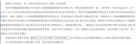2016年,美锦集团申请立案要求追偿,这才负有连带清偿责任的李兆会陷入窘境。更令人唏嘘的是,曾经身家百亿的他,目前名下已无财产可供执行。