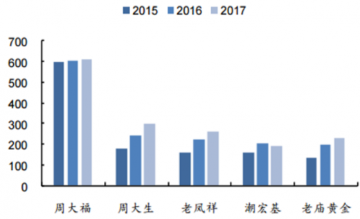 我国珠宝市场以黄金为主,而美国市场则是以钻石为主。同时,我国人均珠宝消费量远低于发达国家:2016年我国人均珠宝消费量仅为54.11美元,低于同期美国的306.7美元和日本的180.2美元,增长潜力巨大。